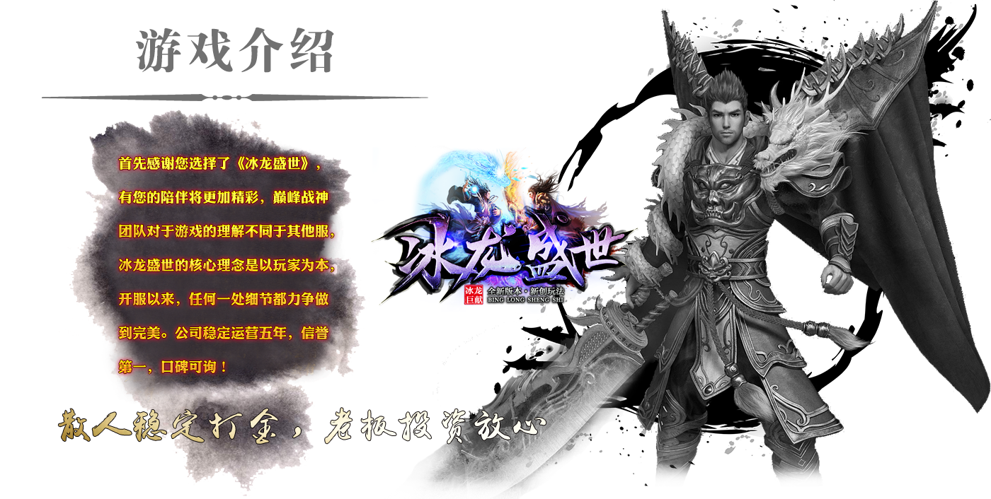【公司运营】: 专业团队打造冰龙盛世信誉品牌,长久稳定,不忘初心,物价保值,游戏无暗坑!